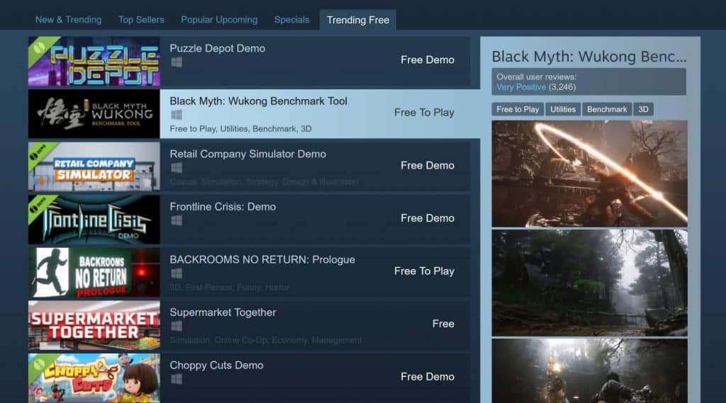 - Currently, the new free Steam section offers articles such as CTHULHU demo worshipers and Wukong Free Black myth: Wukong.